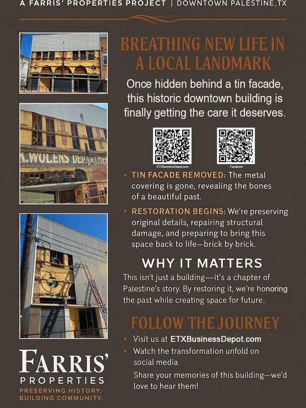 Come along with us as we uncover, discover and rebuild history in Downtown Palestine, TX